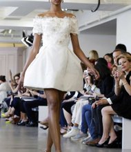 In this April 18, 2015 photo, a model wears a creation from the Oscar de la Renta Bridal Spring 2016 collection in New York. Peter …