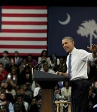 President Barack Obama speaks during a town-hall meeting at Benedict College, Friday, March 6, 2015, in Columbia, S.C., about the importance of community involvement. (AP …