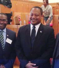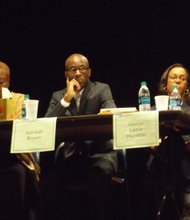L -R Brian Garner, Ald. Roderick Sawyer and Richard Wooten at the Greater Chatham Alliance's (GCA) aldermanic forum.