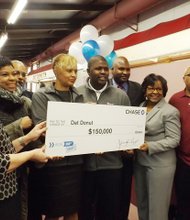 Laura Helmuth, Market Manager for Business Banking, Chase Bank Chicago; Melinda Kelly, Executive Dir. Chatham Business Association; Ill. Sen. Donne Trotter; Andrea Townson, owner of …