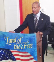 Villageof Hazel Crest Mayor Vernard Alsberry, a 10 year U.S. Air Force veteran, offered his remarks at the Village of Hazel Crest’s Veteran Commission's Veterans …