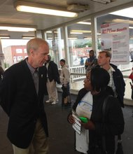 In this photo taken on Sept. 15, governor-elect Bruce Rauner, makes a campaign stop to greet potential voters at the 95th & Dan Ryan bus/train …