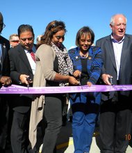 Alderman JoAnn Thompson celebrates with Ombudsman Chicago students and staff during a ribbon cutting ceremony honoring the grand opening of Ombudsman’s third Chicago Options School, …