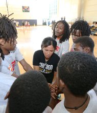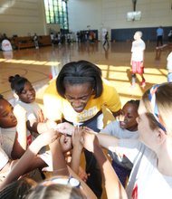 Chicago Sky General Manager and Head Coach, Pokey Chatman, pictured engaging the youth at Fosco Park, 1219 W. 13th St., on September 13 for a …