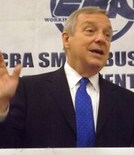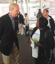 L-R: Courtney Griffin, director of sports and fitness at the South Side YMCA,6330 S. Stony Island Ave. and Dr. Leon Finney, Jr., took part in …