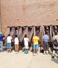Youngsters practice their jump shots outside of Whitney M. Young Magnet High School, 211 S. Laflin St., during the Chi-League All Star Game this past …