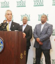 Chicago Mayor Rahm Emanuel and 16th Ward Ald. JoAnn Thomson, seen here last year announcing that Whole Foods was coming to Englewood.