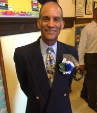Ombudsman Chicago principal, Dr. Chaun Johnson, congratulates Nafis Maddox on graduating from Ombudsman Chicago.
