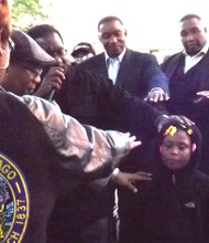 (L-R) 27th Ward Ald., Walter Burnett; Rev. Marshall Hatch, pastor of New Mount Pilgrim Baptist Church, 4301 W. Washington Blvd; former NBA basketball star, Isiah …