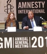 (L-R): Sarah Clements, Jr. Newtown Action Alliance chairwoman and Nathaniel Pendleton, father of slain Chicago teen Hadiya Pendleton who was shot and killed in a …