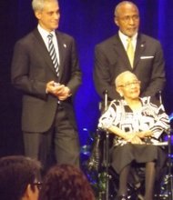 Mayor Rahm Emanuel presents the Rev. Dr. Willie Taplin Barrow with the City of Chicago's Champion of Freedom Award for her tireless commitment to the …
