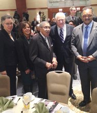 (L-R): Cook County President Toni Preckwinkle, U.S. Congresswoman Robin Kelly (IL - 2nd), Rev. Clay Evans, Pastor Emeritus, Fellowship M.B. Church, Illinois Governor Pat Quinn …