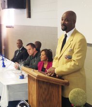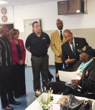 Mike Jennings, Exec. Community Affairs, nfl, addressed veterans at the american legion hall in Hazel Crest, IL on veteran's Day. (L-R): Hazel Crest Village President …