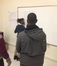 Starmesha Parter, a student at Ombudsman, works on an English excerise at the new Ombudsman Chicago location, 2401 W. Congress Parkway.