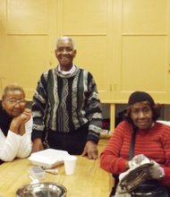 L-R: Kathryn Terry, Kenwood United Church of Christ Soup Kitchen coordinator; Rev. Dr. LeRoy Sanders, senior pastor at Kenwood United Church and Deacon Loretta Caldwell, …