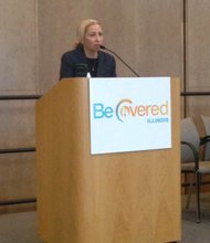 Donna Gerber, Be Covered Illinois Vice President of Public Affairs and Community Investments speaks to summit attendees about the Affordable Care Act