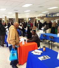 BAPC African Expo attendees visit vendor display tables to gather information.