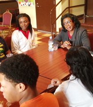 Dorothy Brown answers questions from students at Chicago Vocational Career Academy (CVCA) High School as she participated in the 4th Annual Back to School with …