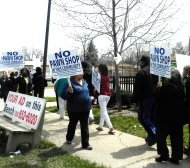 Members of the South Shore Gardens Betterment Association protest a proposed Cash America Inc. of Illinois pawnshop's move into the community. Photo/Deborah Bayliss
