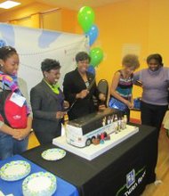 From left to right, Young Women's Leadership Charter School (YWLCS) students, Creola Diggs, Kristina Henderson, watch as Deniece Fields, principal of YWLCS and Melissa Overton …